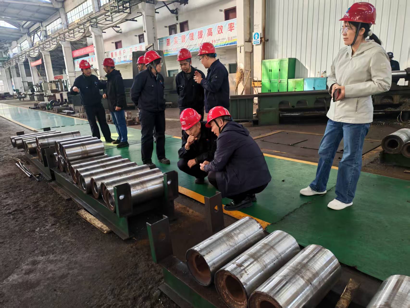 在舞鋼集團相關(guān)負責(zé)人陪同下,考察團實地觀摩了舞鋼生產(chǎn)線各類機床的運行細節(jié)、加工流程及成品精度,同時圍繞設(shè)備使用效率提升、加工精度把控、生產(chǎn)技術(shù)難點破解等關(guān)鍵環(huán)節(jié),與現(xiàn)場技術(shù)人員開展了技術(shù)交流,并從設(shè)備定制服務(wù)、售后技術(shù)保障、降本增效等方面開展了深入溝通。